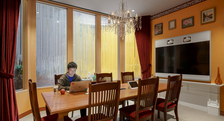 团体活动位于双高度中庭附近,充满了定制的艺术设施,进一步激活这个空间中心,让员工能够看到并参与协同的工作空间。在办公楼层的周边,空间逐渐变得更加私密,以适应整个工作场所的活动。