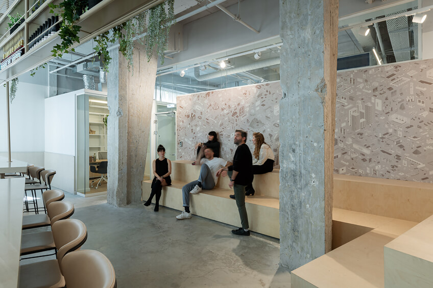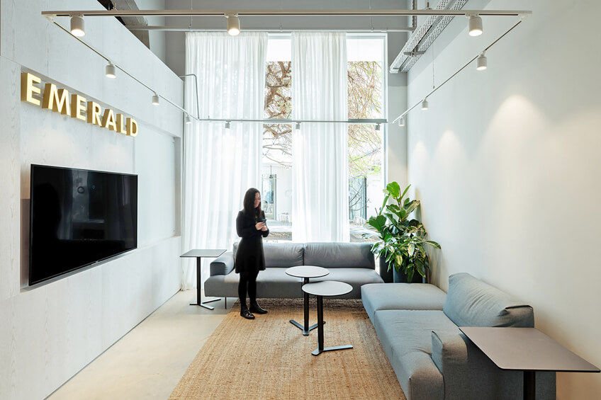设计师决定离开“白色盒子”,露出混凝土的结构元素。天花板的外露系统被漆成一层精致的灰色,窗户的开口被扩大,以加强内部和外部的连接。广泛使用明亮的桦木和石英表面的微妙的自然色调,结合浅色墙壁,让自然光自由进入空间。