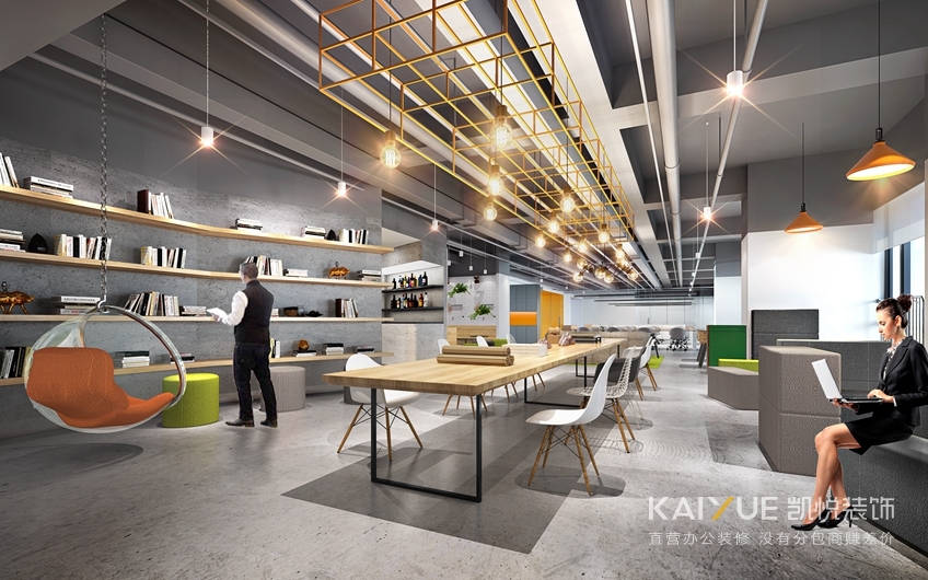 以年轻和活跃作为设计的主题,可以从办公室装修效果图里读到一丝轻松的气氛,凤翔传说本身是一个很有活力的公司,所以在空间的表达上,达到了一致。