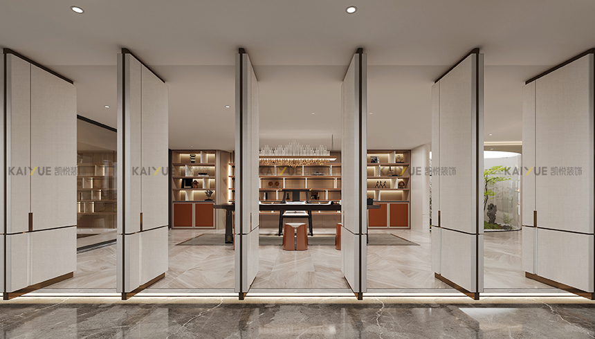 在这里,几何主义不再是冰冷的概念,而是被赋予了温度的艺术语言。球弧形与线元素巧妙交融,点、线、面重构了空间的维度,不同形态的体块材质遵循着潜在的秩序,被切割重组为令人惊叹的造型。