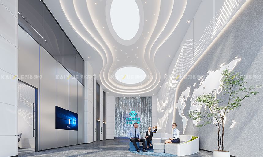 科技感--通过空间气质表达企业特性,使用金属材质打造充满科技感的空间气质。