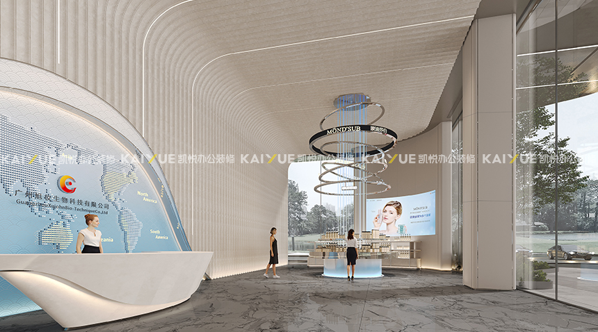 旭妆生物总部办公楼设计与施工由凯悦装饰承接,这不仅是一次办公空间的升级,更是一场关于“光”与“生命”的空间叙事。我们以 “旭日东升” 为设计灵魂,让企业“照亮世界每一个角落”的宏愿,在建筑中具象生长。