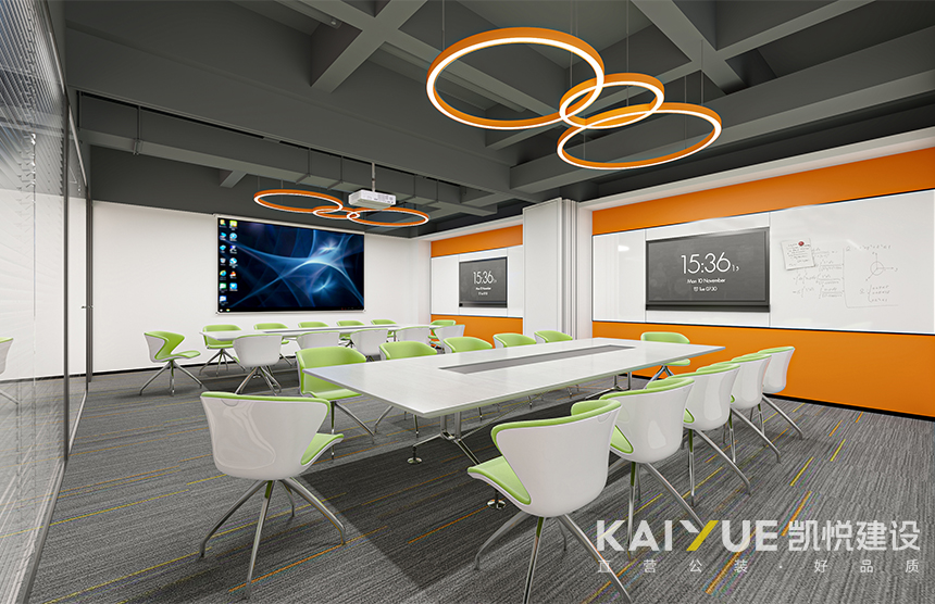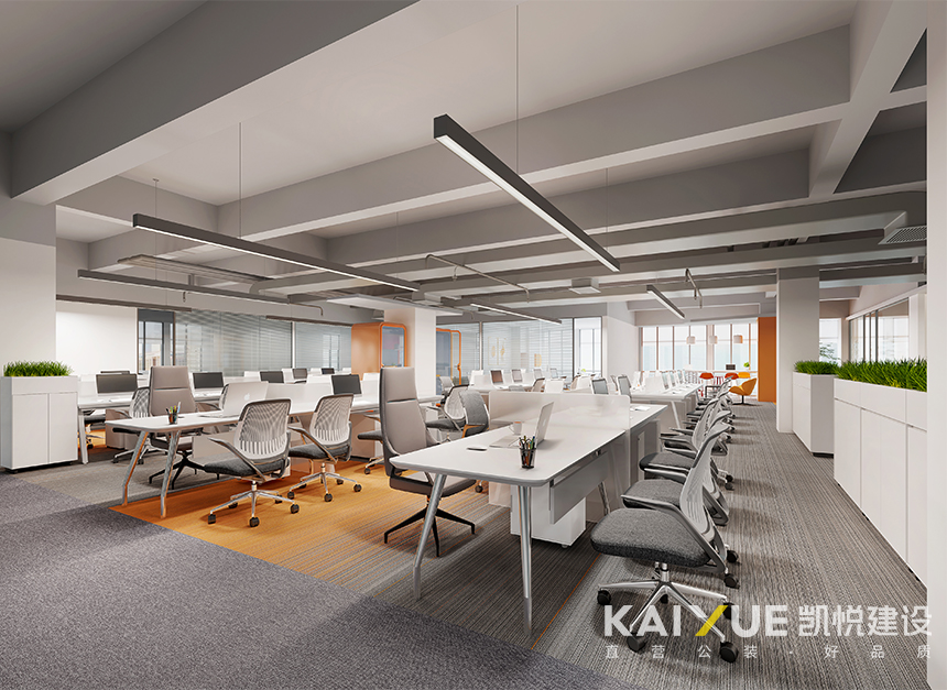 广州橘子电气有限公司新办公室位于佛山市南海区,办公室装修工程面积约2400㎡,工期约37天,由凯悦建设承建。