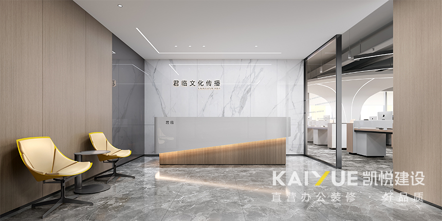 广州市君临文化传播有限公司新办公室位于广州市天河区,主要包括前厅、办公区、会议室、茶室、总经理办公室等空间。