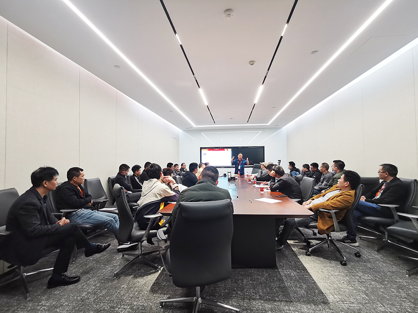 会上,袁总特别强调办公室装修施工现场安全管理、质量保证、服务态度,以规范各班组的施工流程,统筹各班组做好项目品质,服务好客户,创造价值。