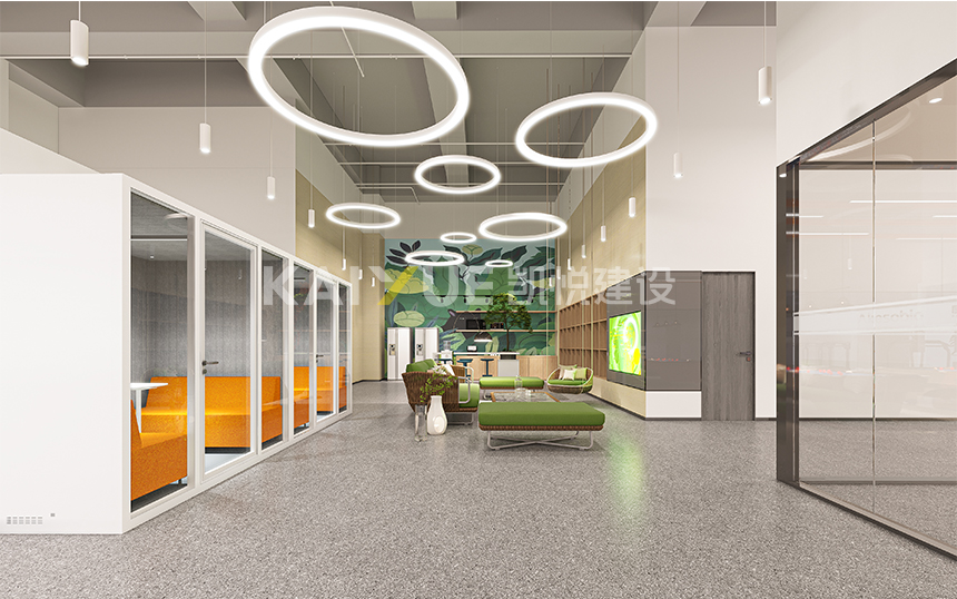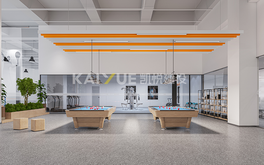 康方药业有限公司员工活动中心位于广州市黄埔区,室内设计施工面积约1517平方米,设计及装修工程项目由凯悦建设全案承接。