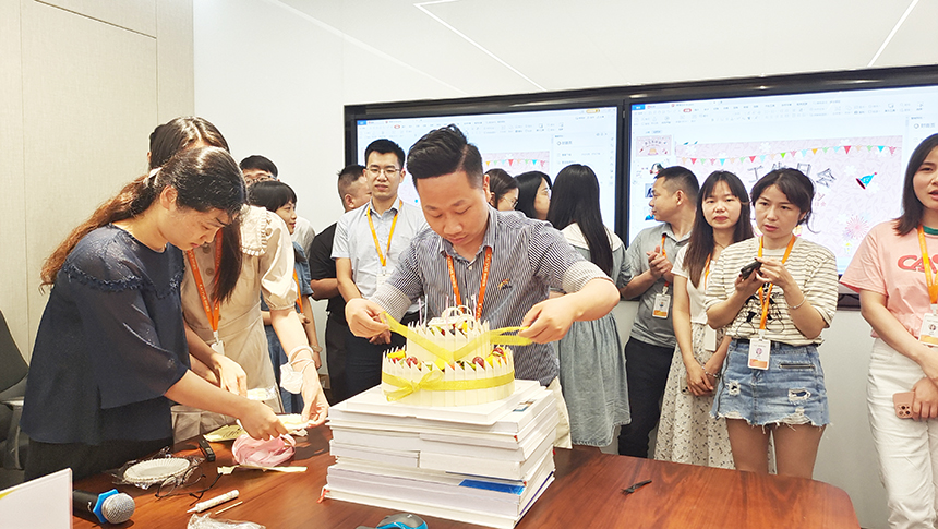 生日会上,袁总给每一位寿星发红包送祝福,寿星们围绕在一起,欢声笑语吃蛋糕玩游戏,这是凯悦大家庭给予大家的温暖关怀和归属感,感恩于心。@凯悦办公室装修