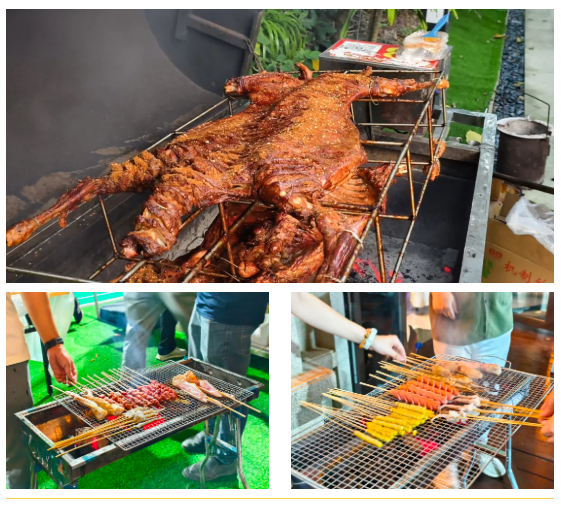 当夜色降临,烧烤的香气已弥漫开来。烧烤区瞬间成为最热闹的地方!“隐藏大厨”们各显神通,娴熟地翻转着肉串,香气四溢;大家围坐在一起,举杯畅饮,大快朵颐。在皎洁的月光下,欢声笑语与动听音乐交织,工作的疲惫在这一刻彻底消散,同事间的情谊在杯盏交错中持续升温。