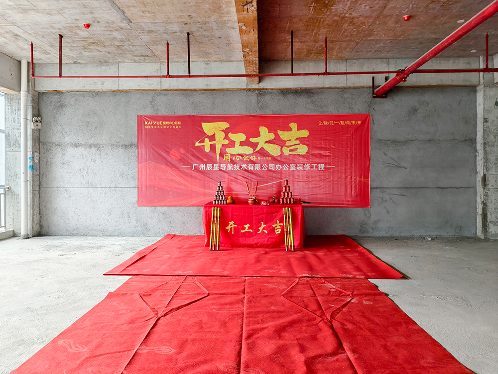 良辰吉日,广州辰星导航办公室装修项目开工仪式在项目现场隆重举行。本项目由凯悦装饰承接,双方管理层代表共同出席见证。